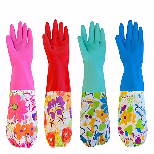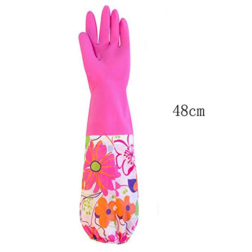 Bestartstore 48 x 10cm Waterproof Household Cleaning Dish Washing Gloves Thickening Rubber Latex Gloves with Velvet Lining