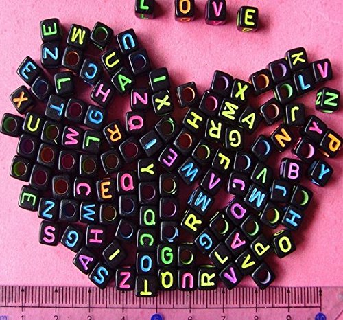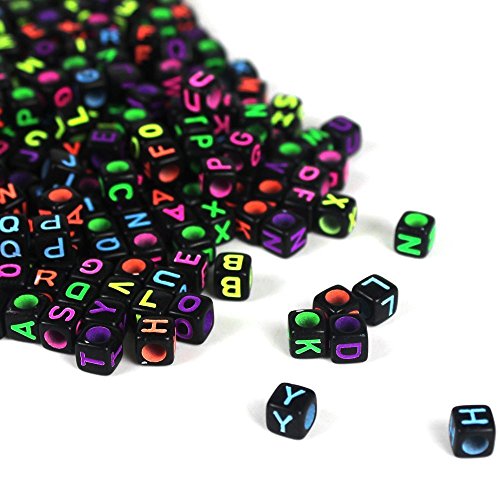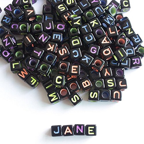 Magnolora 800 Pcs Acrylic Letter Beads Black Alphabet Beads with Multicolor Letters, Mixed Color Alphabet "A-Z" Cube Beads for DIY Bracelets, Necklaces, Children's Educational Toys, Handmade Gift