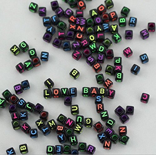 - ✔DIY Acrylic Plastic Awesome Alphabet Cube Beads with assorted colors letters on the surface - red, orange, yellow, blue, pink, purple.