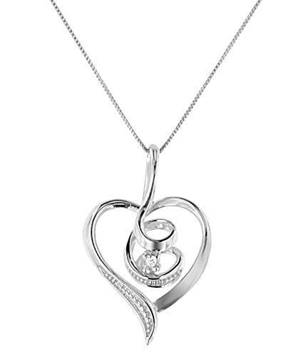 Symbolizing a love that never ends, this impeccably designed sterling silver heart pendant swirls at the center and sparkles with a scattering of diamonds. It's a classic romantic surprise she'll want to show off every day. Part of the Espira brand.Feature