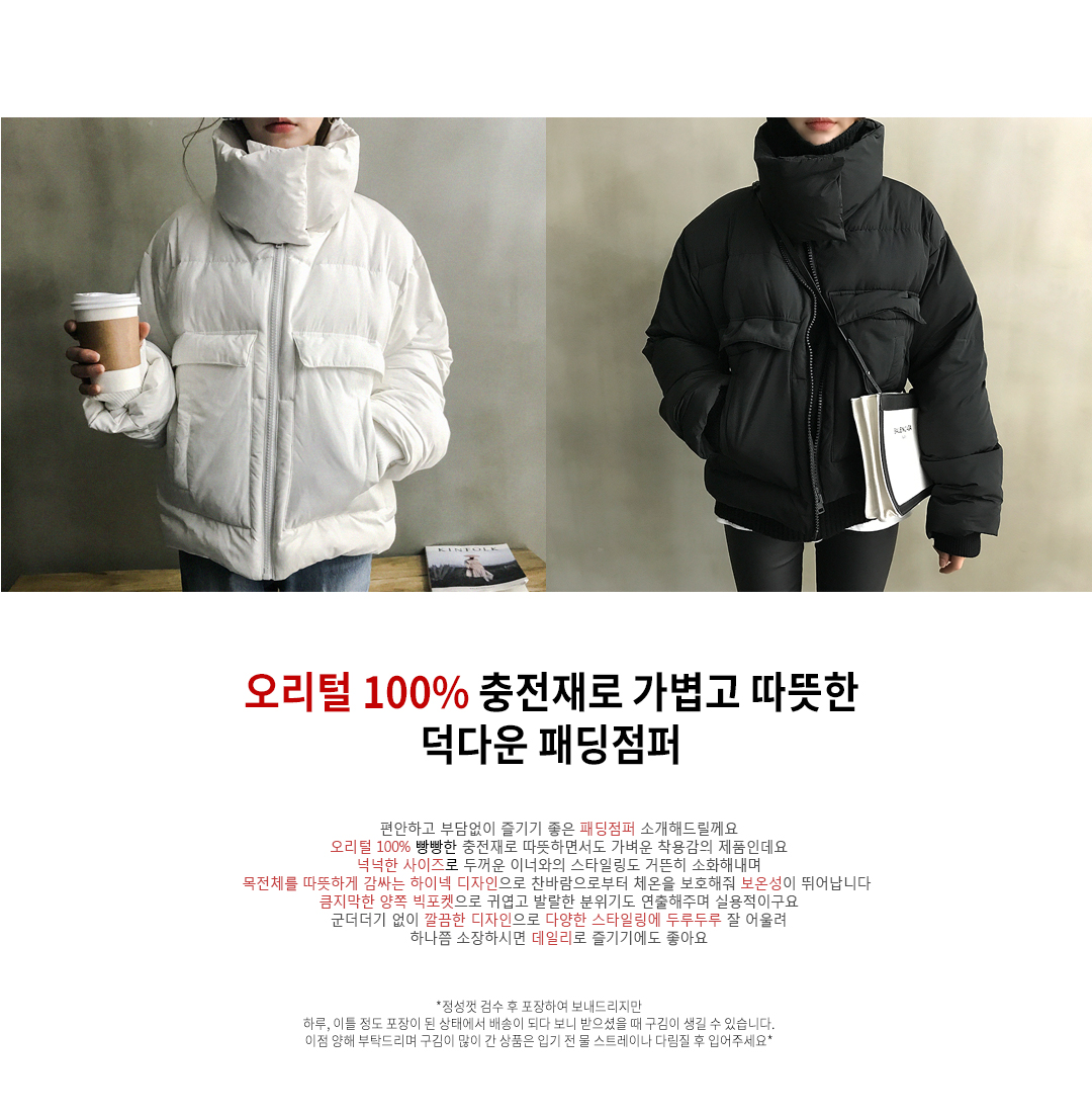 폴리에스테르(polyester/)100%/안감(lining)폴리에스테르(polyester/)100%/충전재오리털(duckdownyhair/)100%