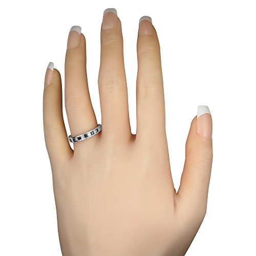 -. Title : 14k White Gold P.R.Incess-cut Diamond and Blue Sapphire Wedding Band Ring (5/8 cttw, H-I, I1-I2)