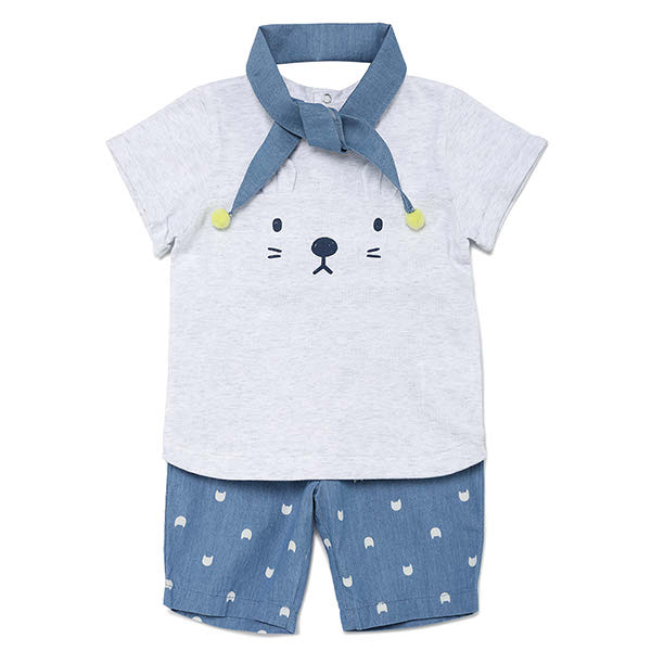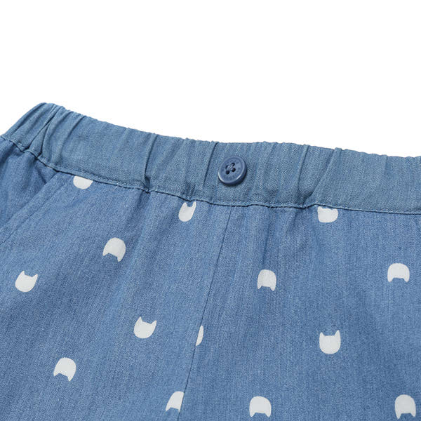 강아지 패턴을 사용한 가벼운 소재의 데님팬츠와 스카프까지세트로 구성되어 코디 완성도가 높은 아이템입니다.
