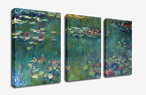 -. Title : Water Lilies by Claude Monet Oil Painting Canvas Prints Wall Art Decor Framed Ready to Hang - 3 Panel Large Size 30 by 60 Inch Modern Giclee Art Work for Home Office Living Room Bedroom Decoration