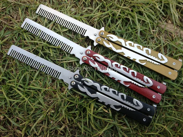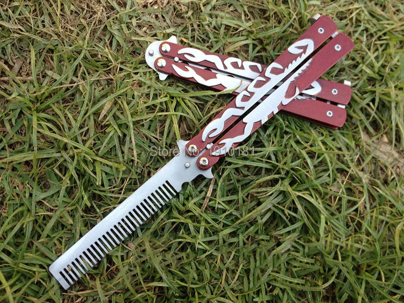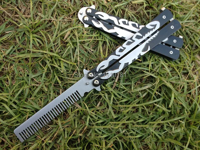 | [해외] 새로운 스테인레스 스틸 연습 칼 butterflytraining 칼 트레이너 접는 나이프 무딘 도구 야외 캠핑 칼 빗 4 색 |