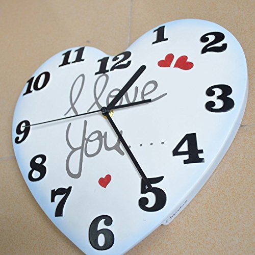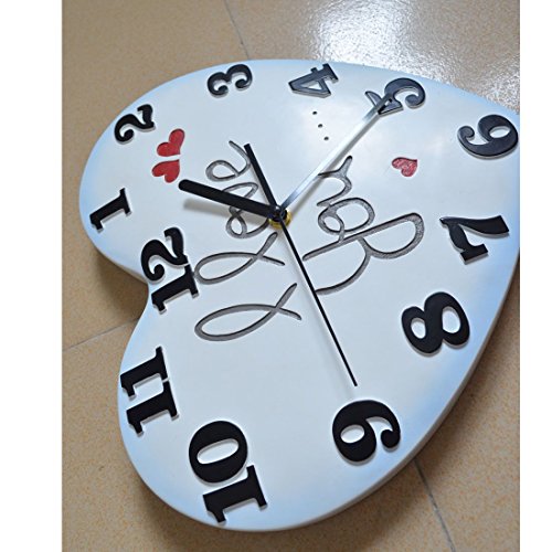 -. Feature : Romantic heart shaped pendulum clocks decorative design makes your home looks different, more attractive, clock size is about 31*28*3.5cm, package weight is about 1607g. / Art wall clock is powered by one "AA" battery (not included with purchase). Black colored hour, minute and second hands. / Home decor wall clocks easy clean with a soft cloth, and no harm to the environment and health. / Perfect for living room, bed room, kids bedroom, kitchen, dining room, family room, office, meeting room. / Beautiful wall clock perfect for Father's Day, Birthday, Mother's Day, Christmas and any occasion, housewarming gift, holiday gift etc.