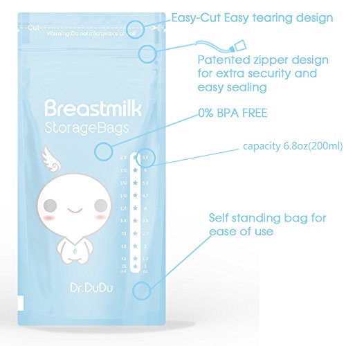 Dr.DUDU Breast Milk Storage Bags, 6 oz,BPA-Free, 120 Count