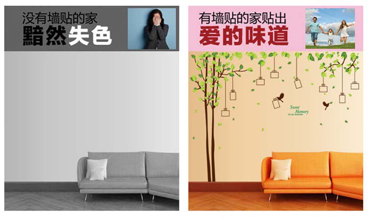 Frame Tree Wall Stickers: Frame size 12.5cm * 9.2cm, the size of 3-5 inches