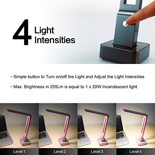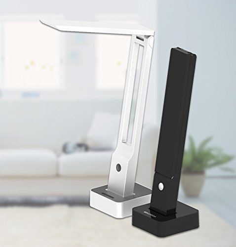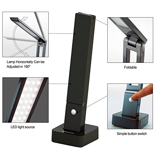 -. Feature : LED USB Table Lamp Battery Powered, 6W gives equivalent of 40Watt of incandescent light bulb , Can be powered by Solar Panel, Environmental friendly due to low consumption / True glare, shadow,UV and flicker free ;3 level light intensity; Lamp shade Horizontally movement Angle :0°-90° / Multi Function: Table Lamp, Desk Lamp, Flash Light, Night Lamp, Portable; Emergency Light / You get light even there is power outage;Charged by USB or regular power / LED light bulb has typical 25 Years of life; Lamp uses Recyclable material