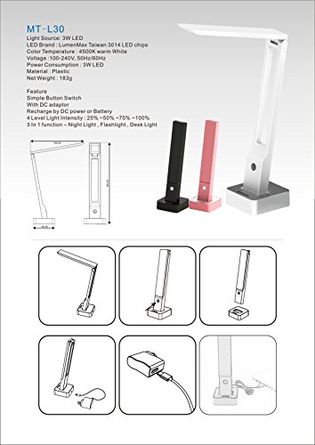 -. Title : Ensupra MT-L30 6 W USB Rechargebale Foldable LED Desk Lamp