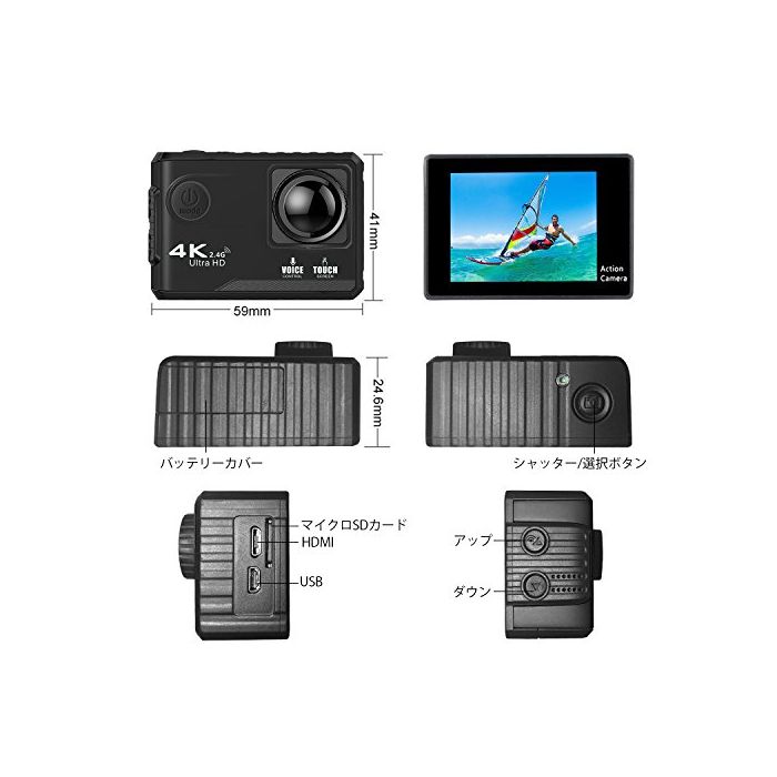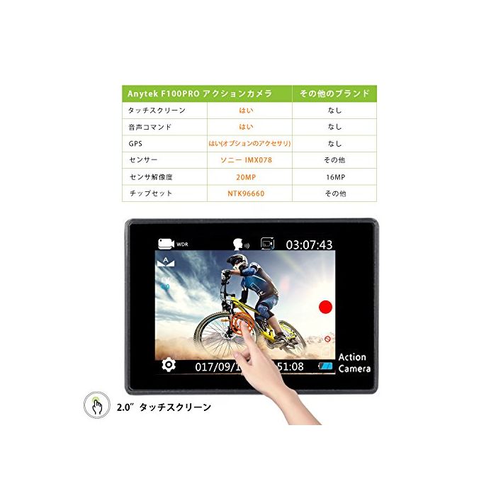 원본상품명: 4k アクションカメラ 2000万ピクセル スポツカメラ Anytek F100 Pro【メカ直販/1年保付】30M防水 wifi 170度角レンズ 2インチ液晶 タッチスクリン 2.4G