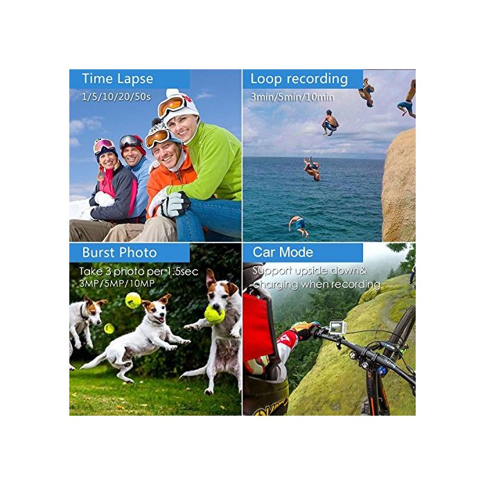 170°광각 렌즈를 사용하고, 4K / 24ps,1080p / 60ps,720p / 120fps비디오,20MP사진을 기록합니다.충전식 리튬 배터리는,대용량1050mAh 3.8V에,1회의 충전으로 최대120분의 4K / 30fps비디오를 기록에 옵니다.2인치LCD터치 스크린을 내장 하고 있기 때문에,간단하게 프리뷰 하는 것 를 할 수 있습니다.