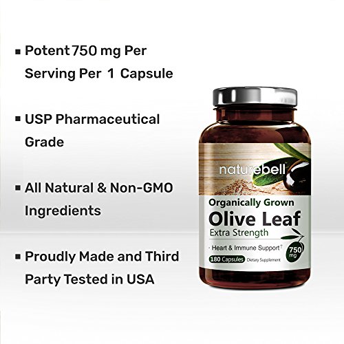 -. Feature : NatureBell Natural Olive Leaf 750mg, 180 Capsules. Maximum Strength and Highest Potency. / Powerfully Supports Immune System, Cardiovascular Health and Strong Antioxidant. / Powerfully Supports Stable Blood Pressure, Fights Free Radicals and Help Keep Wounds Free from Infection. / Non-GMO. Soy Free. Gluten Free. Dairy Free. Sugar Free.Tree Nut Free. / Manufactured in California in FDA Registered Facility. 1 Year Unconditional Money back Guarantee.