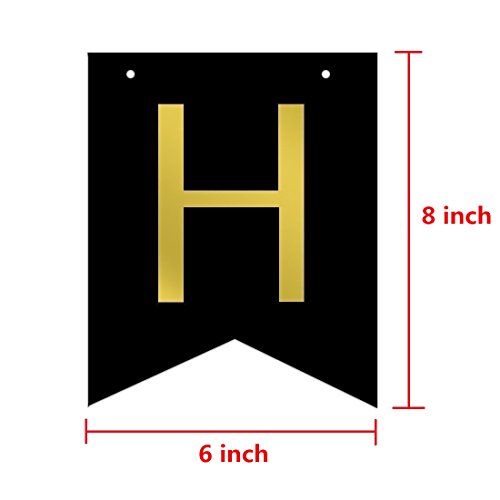 Size: Happy 4.9 ft, birthday 6.5 ft, each black letter paper card is 8 x 6 inch, with gold foil printed letters which gives pretty and cute shimmering look; gold curtain is 1m x 3m, can be the party decoration background; latex balloons are 12 inch, come uninflated; pom poms tissue flowers are 10 inch; star balloon is 12 inch; champagne bottle and glass are 40 inch