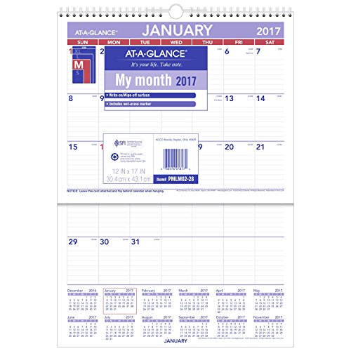 -. Title : AT-A-GLANCE Monthly Wall Calendar 2017, Erasable, 12 x 17", Ruled (PMLM02-28)