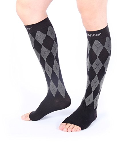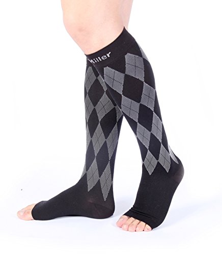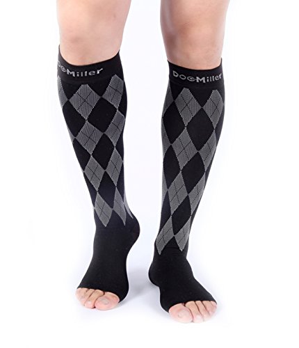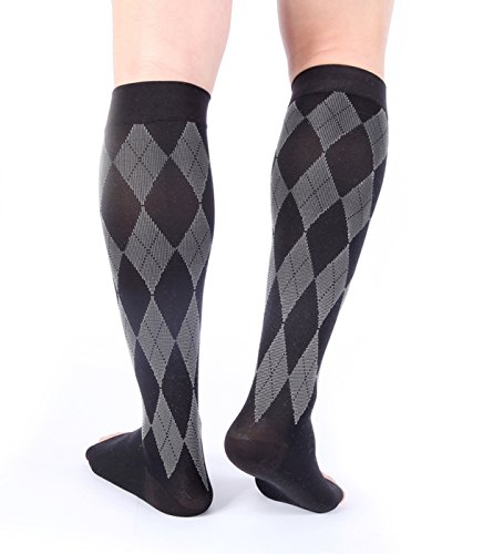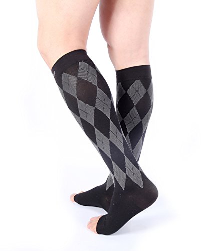 Premium Compression Socks 1 Pair 20-30mmHg Support Knee High Argyle COLORS Open Toe Stockings Graduated Pressure Recovery Venous Circulation Varicose Spider Veins Airplane Maternity Opaque Doc Miller