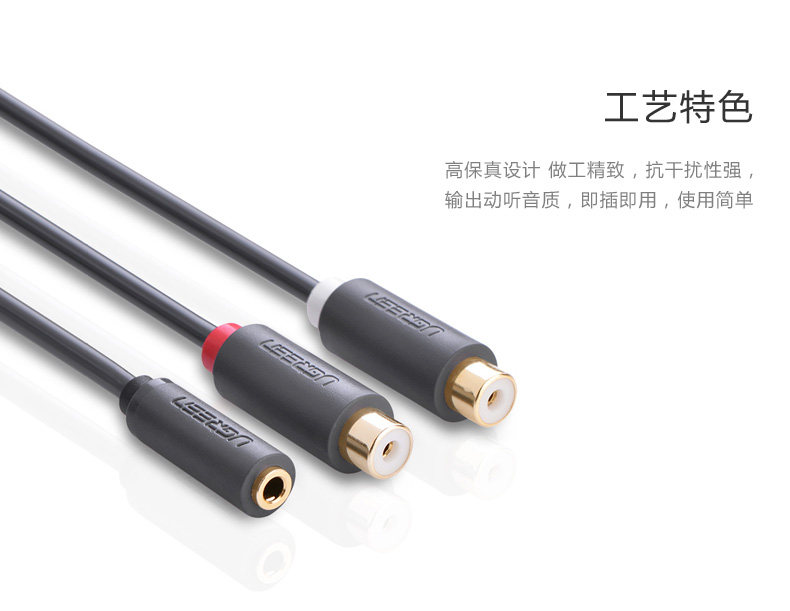 绿联 10562 3.5音频母转2RCA母红白双声道转接线 3.5mm转双莲花头
