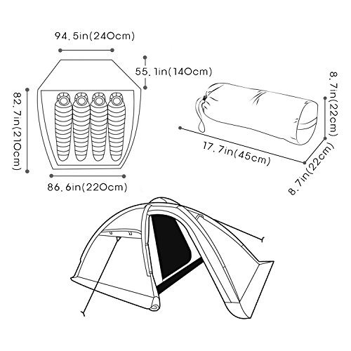 EASY TRANSPORTATION: Constructed with lightweight materials make the tent easy to be tore down and packed in the carrying bag for easy portability. It is ideal for family/group camping, hiking and self-driving traveling.