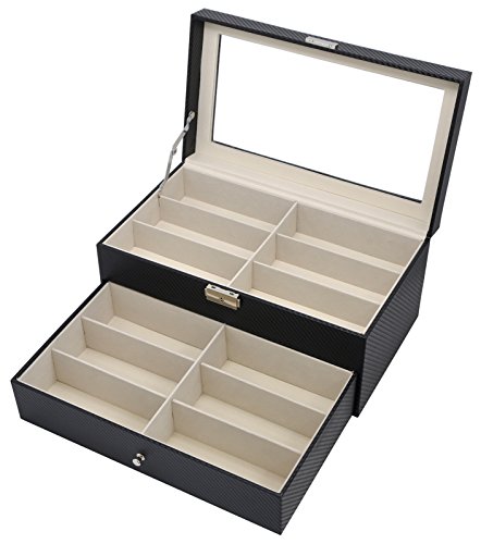 Perfect for storing, organizing and displaying your favorite eyeglasses, sunglasses, watches, jewelry, coins or a variety of collectibles in efficient and handsome way