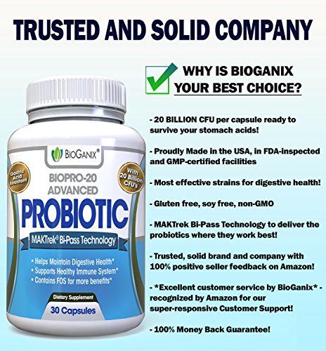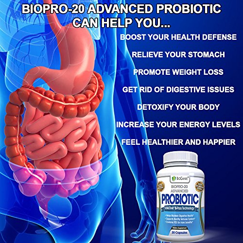BIOPRO-20 Advanced Probiotic Supplement for Women & Men (Gastric Acid Resistant) 20 Billion CFU Per Capsule – Detox, Weight Loss, Immune & Digestive...