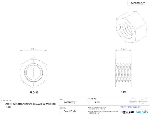 Steel Hex Nut, Zinc Plated Finish, Grade 5, ASME B18.2.2, 3/8"-16 Thread Size, 9/16" Width Across Flats, 21/64" Thick (Pack of 100)