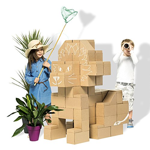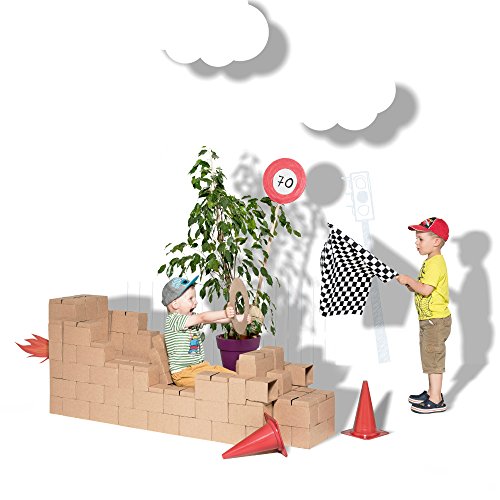 ERSTKLASSIGE PAPPE - dick, doppelwandig und 100% recycelbar. Diese Eigenschaften sichern, dass die Bausteine sind leicht und sicher, wie auch lautlos. Kinder konnen auf Sie stolpern, grosse Bauten erstellen, ohne sich zu verletzen.