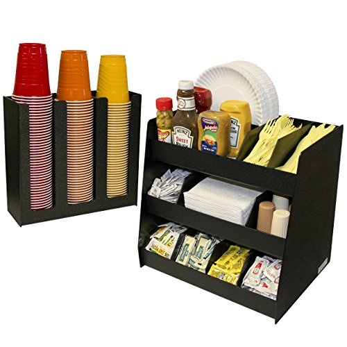 2 Piece Combo Coffee Condiment Organizer And A 3 Column Cup and Lid Holder...for One Great Price ! A Very Professional Coffee Program Presentation. Comes with 6 Extra Tall Shelf Dividers that are Movable & Removable. Proudly Made in the USA! by PPM.