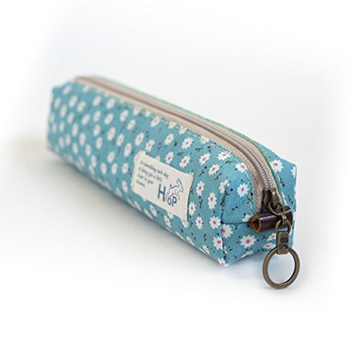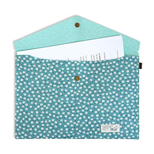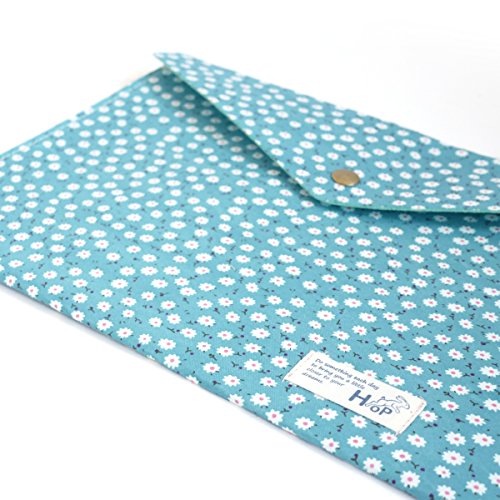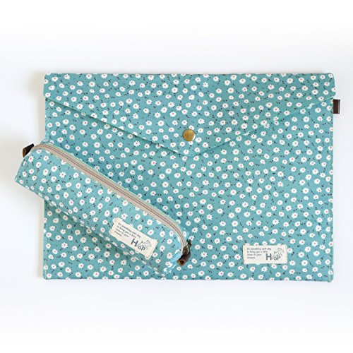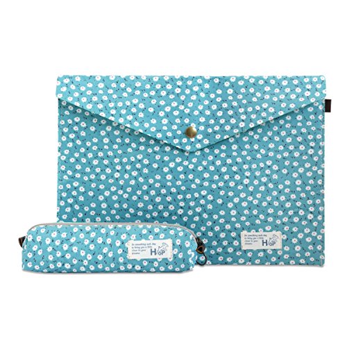 Back To School Supplies Cotton Canvas Letter Size Envelope Wallet and Pencil Pouch Set (Turquoise Flower)