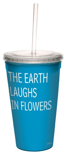 Tree-Free Greetings 80580 Uplifting Quote The Earth Laughs Artful Traveler Double-Walled Acrylic Cool Cup with Reusable Straw, 16-Ounce