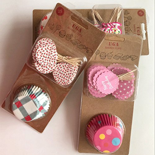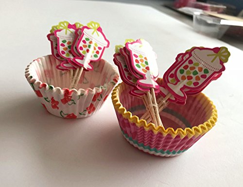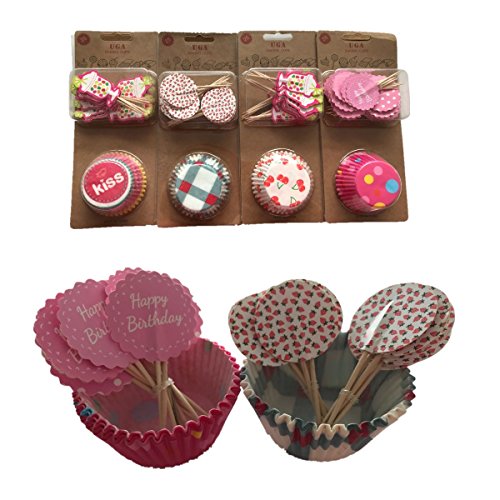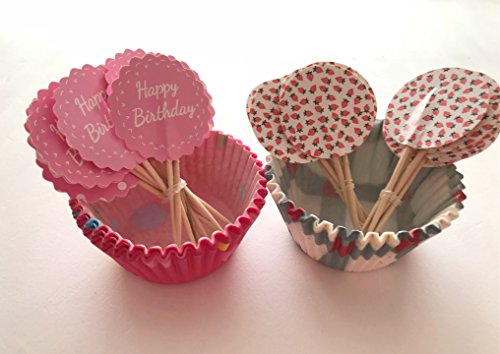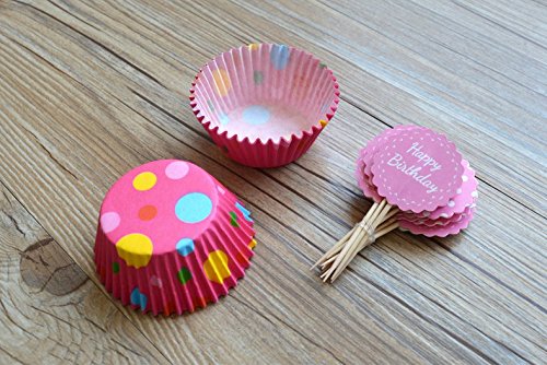 SUSOKI Set of 96 Cupcake Liners With Picks – 96 Cupcake Toppers + 96 Wrappers for Decorating Wedding/Birhday Cupcake (Color Random)