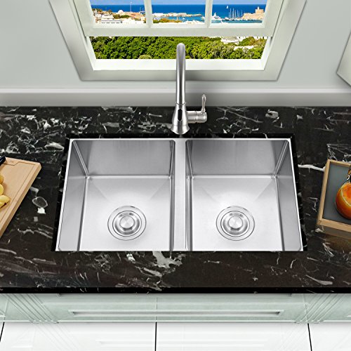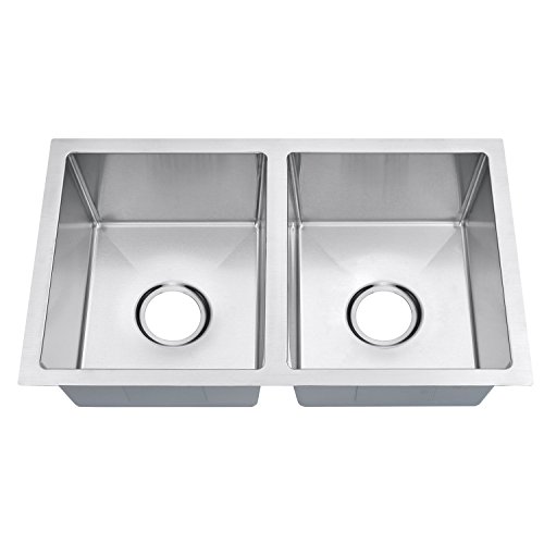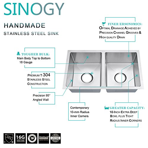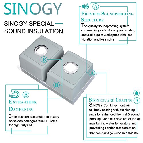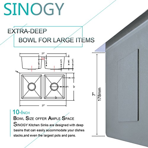 SINOGY 27"x16" Inch 50/50 Double Bowl Handmade Brushed Satin 7" Deep Kitchen Sink Undermount 18 Gauge Stainless Steel For RV Without Accessory