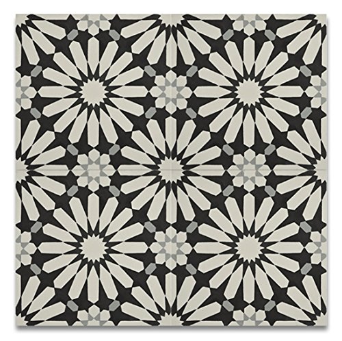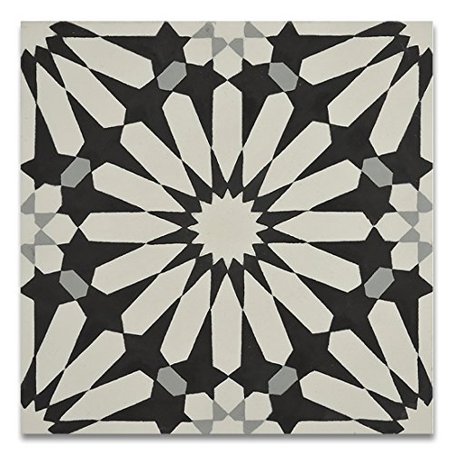 Moroccan Mosaic & Tile House CTP54-01 Alhambra 8’’x8’’ Handmade Cement Tile in Multicolor(Pack of 12), BlackWhiteGray