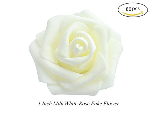 Artificial Fake Roses Flowers Heads In White for Bridal wreath Decor or DIY Flower Wall Decor(1'' Pack of 80pcs)