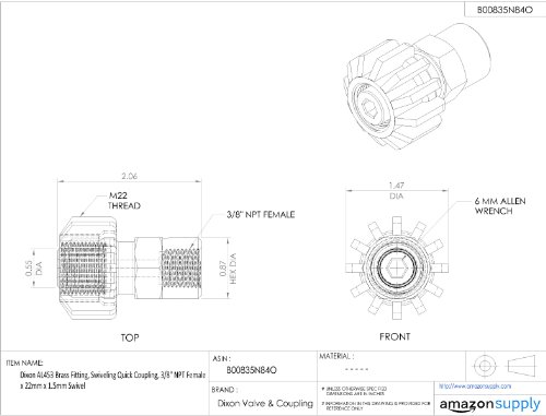 Dixon AL453 Brass Fitting, Swiveling Quick Coupling, 3/8" NPT Female x 22mm x 1.5mm Swivel