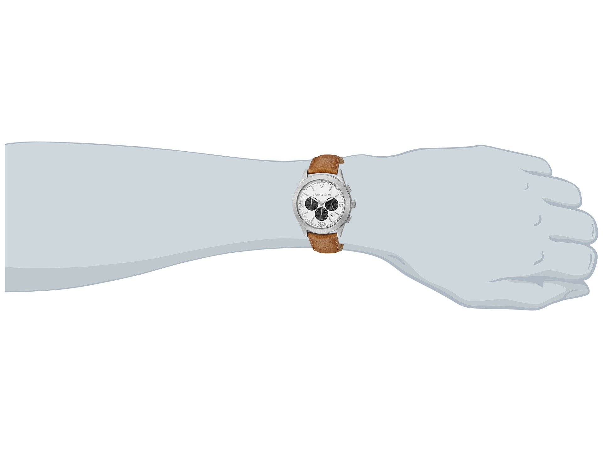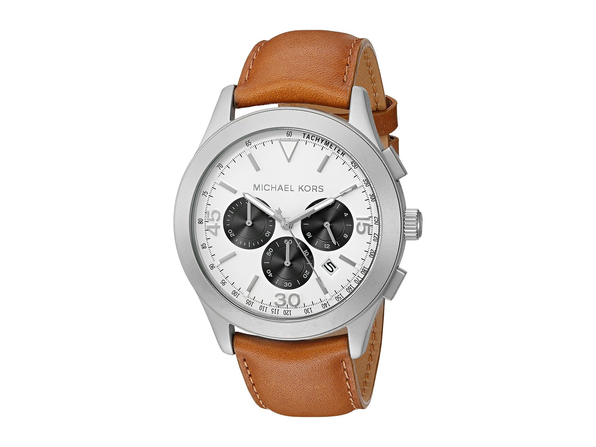 | Product Information SKU: #9038013You'll never be late again when you wear the Michael Kors? Gareth watch. Black or silver stainless steel case. Premium leather or stainless steel band. Fold-over clasp with push button release or buckle closure.Three-hand analog display with quartz movement.Tachymeter inscribed rim. Chronograph functionality.Water-resistant to 5 ATM/50 meters.Imported. This product may have a manufacturer's warranty. Please visit the manufacturer's website or contact us at warranty@support.zappos.com for full manufacturer warranty details.Measurements: Case Height: 44 mm Case Width: 44 mm Case Depth: 11 mm Band Width: 21 3?5 mm Band Circumference/Length: 9 1?2 in Weight: 5 oz |