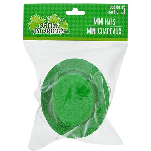 -. Binding : Toy -. Brand : St. Patrick's - at11 -. EAN : 0753248304323 -. Feature : Covered in green glitter, this Leprechaun hat will make your party crowd sparkle! / Each 5" x 2 1/2" plastic hat has an elastic band. / Hurry and get into the Irish spirit with these green Leprechaun hats! / Perfect for a St. Patrick's Day party, event or parade. -. IsAdultProduct : 0 -. Label : Greenbrier -. Manufacturer : Greenbrier -. ProductGroup : Toy -. ProductTypeName : TOYS_AND_GAMES -. Publisher : Greenbrier -. Studio : Greenbrier -. Title : Glittery St. Patrick Mini Plastic Party Hats, 5-ct. Packs -. UPC : 726672192477