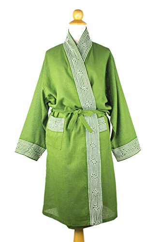 About this item: By Banlue Lueruang, this handsome front-wrap robe evokes fresh forests. He works in cotton to create a long dressing gown with generous pockets. Applications of cotton cord trace mysterious labyrinth motifs that adorn the sleeves, pockets and border. - Dry clean only