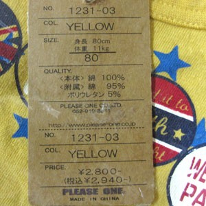 コメント:Pに並べたバッジ風プリントがとってもポップな1枚。※80~95cmは左肩スナップボタン付きです。
