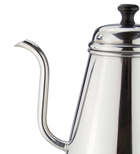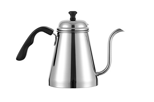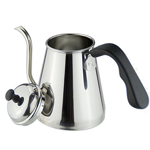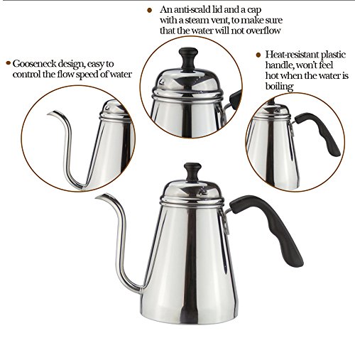 【Gooseneck Design:】Goose neck kettle that really lets you control the flow of water to ground coffee. The spout is very 'accurate' and allows you to precisely control the flow of water out of the kettle. Perfect for pour-overs.