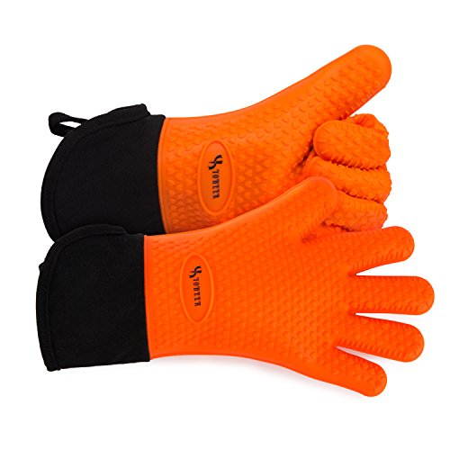 Silicone Oven Mitts, Extra-long Quilted Cotton Lining,Heat Resistant Kitchen Potholder Gloves for Oven,Outdoor BBQ Grill,Fireplace Camping,Kitchen and so on.- 1 Pair (Orange)-YOHEER