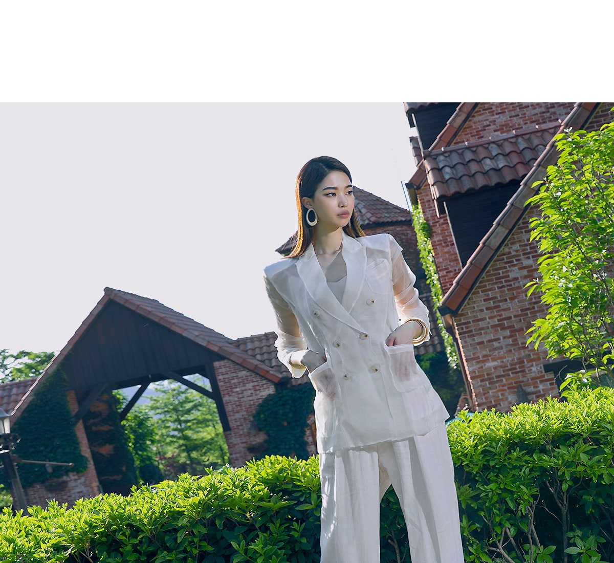 J-4963 더블 버튼 오간자 자켓 Ivory