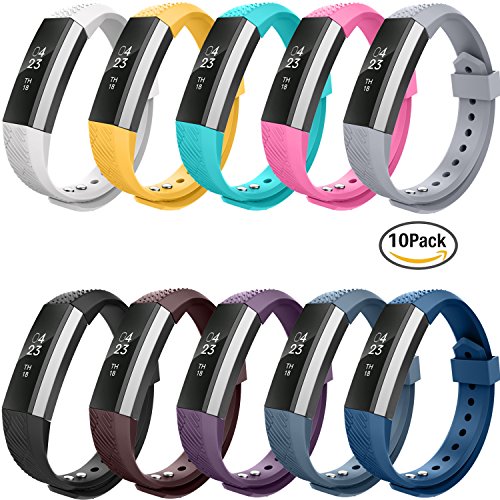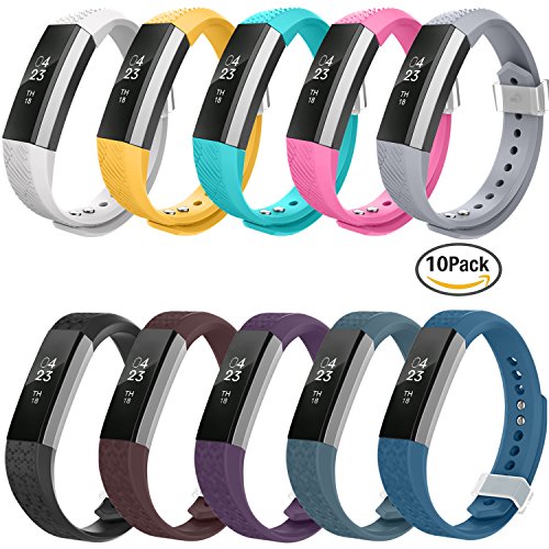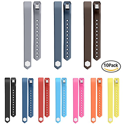 Package includes, 10 fitbit alta replacement bands, 10 unique design fasteners, 10 metal clasps are in a gift box.