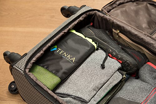 -. Feature : LIGHTWEIGHT AND COMPACT - Comes in Medium (24X48") or Large (28X55") Towel, both large enough to envelop your whole body, yet, when packed it takes 1/6 the size and fits perfectly in your suitcase, gym bag or even your purse. It also comes in a luxurious mesh bag, perfect for carrying your towel to the gym or during your travels. / HIGHLY ABSORBENT AND FAST DRYING - Made of premium microfiber suede fabric to increase durability, Tenka Fitness Towel absorbs up to 10 times more water than traditional towels and it dries in the blink of an eye. Whether you've exercised or just taken a bath, our Tenka towel will absorb all the water and leave your skin smooth and perfectly dry. / SOFT AND COMFORTABLE - If you're tired of feeling the rough fabric of your towel scratching your skin without even absorbing the moisture, then it's time to get rid of it. Specially designed to ensure maximum comfort and absorption, the soft fabric of our Tenka Fitness Towel feels like a delicate caress on your skin. / ANTIBACTERIAL AND HYPOALLERGENIC - We know how important it is for a towel to absorb water or sweat and yet remain fresh for longer periods of time and not irritate your skin. That's why we made sure that Tenka Fitness Towel is both antibacterial and hypoallergenic, which makes it perfect even for sensitive skin / MONEY-BACK GUARANTEE - We are so confident in the quality of our fitness towel that we offer a no-questions-asked money-back guarantee. If, for any reason, our fitness towel is not right for you, all you have to do is let us know, and we'll give you 100% of your money back, no questions asked.