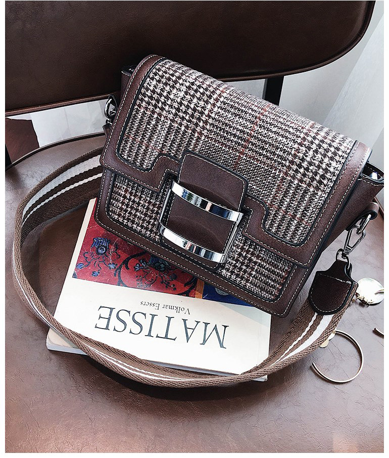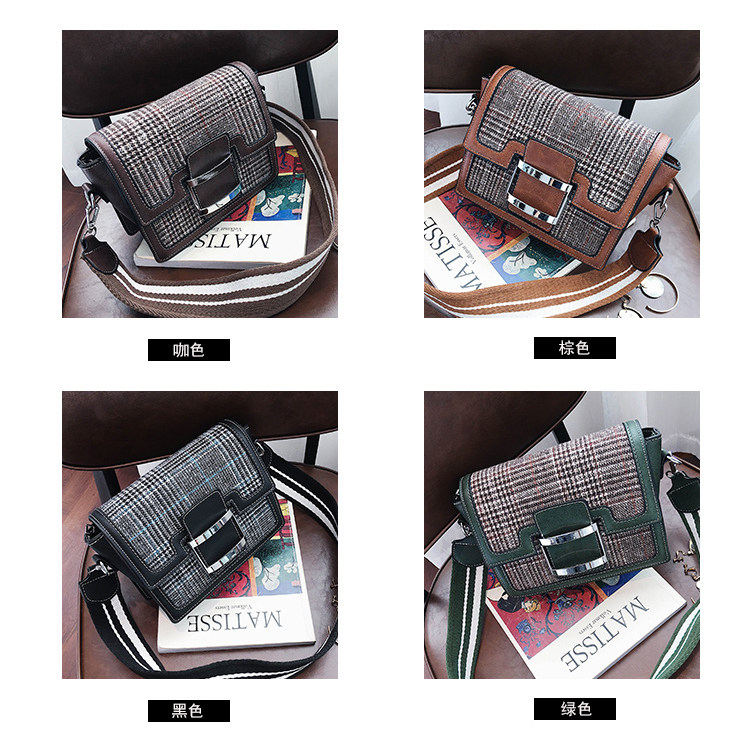 毛呢撞色小包包女新款时尚方扣小方包冬季宽肩带单肩斜挎包