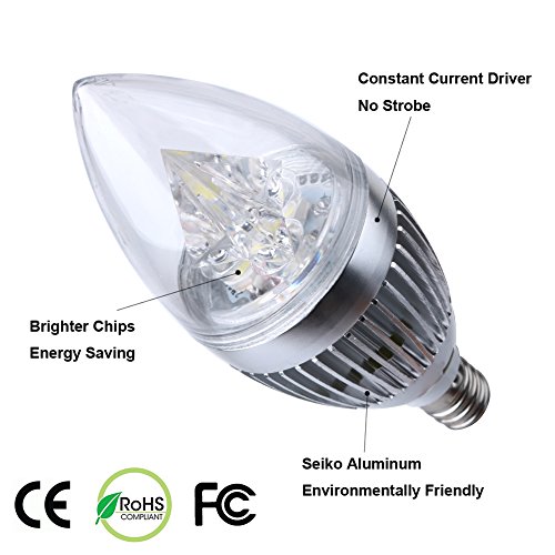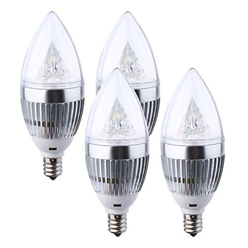 BOVSUN LED Candelabra Bulb, Candle Light,Daylight White 6000K,270lm,E12 Base,3W (30W Incandescent Equivalent),Torpedo Shape Bulb,Chandelier,Interior Decoration Lighting, Not-Dimmable,Silver 4 Pack