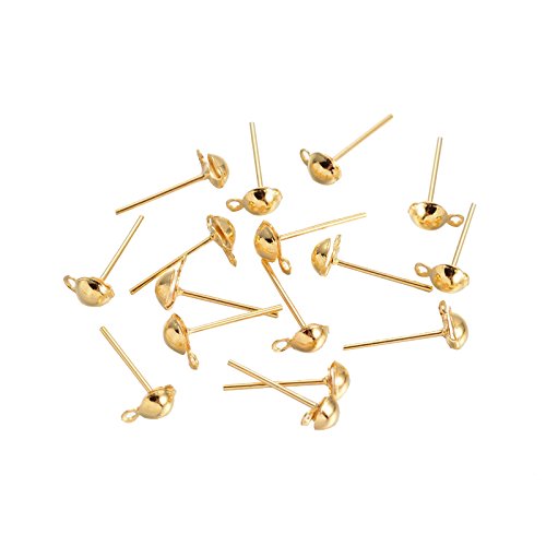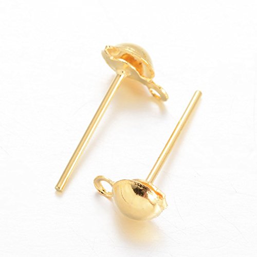 Pandahall 200PCS (100 pairs) Golden Brass Earring Stud Ear Nail Iron Half Ball Post Earring Findings, 6x4mm