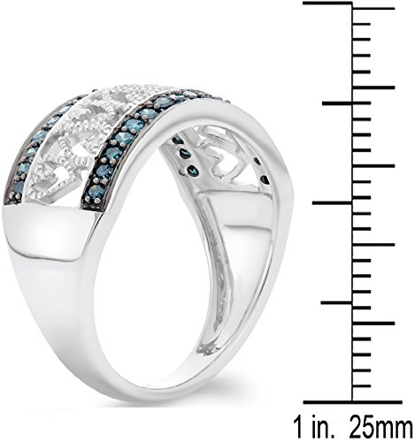 -. Title : 1/4 CTTW Sterling Silver, Heart Ring in Blue Diamonds