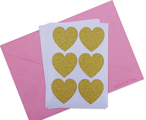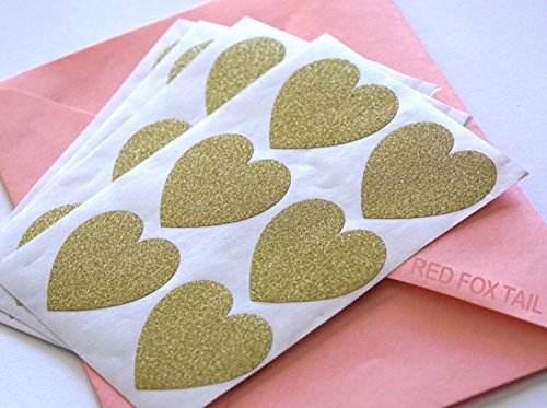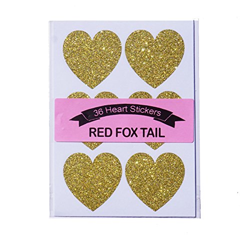 36 Gold Glitter Heart Stickers 1.5 inches - Red Fox Tail