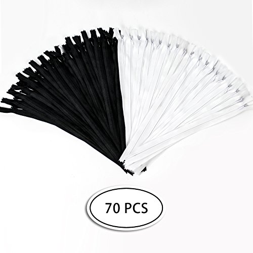 LK-Spring 70Pcs Nylon Coil Zippers Black White Mix in 12 Inch for Tailor Sewer Craft Crafter