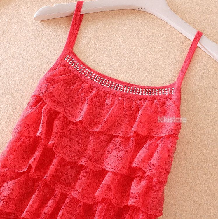 Sexy camisole top with rhinestone and the design of cake layers to be used as the bottoming top for all girls.